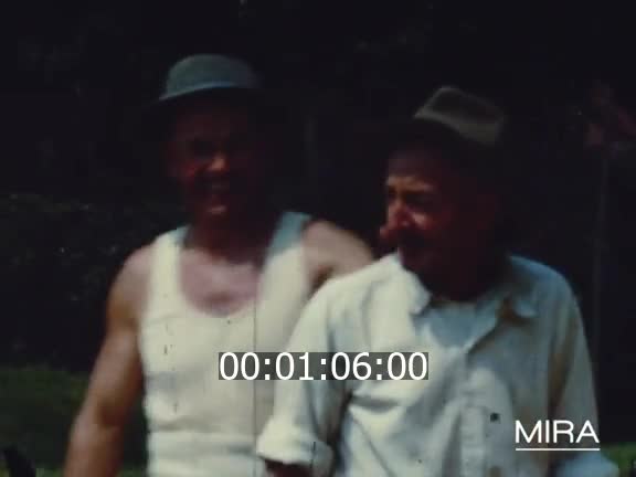 Deux ouvriers posent des poutres au niveau des fondations du garage d'une maison en construction. PANO sur la façade de la maison. Des hommes étendent des poutres qui vont servir à la charpente sur des tréteaux. Portrait d'un homme avec un chapeau. Un homme avec un cheval est présent. Un groupe d'homme prend une pose. L'un d'eux boit au goulot d'une bouteille de vin. PANO ils continuent de marteler les poutres. Il y a une bétonnière au premier plan.