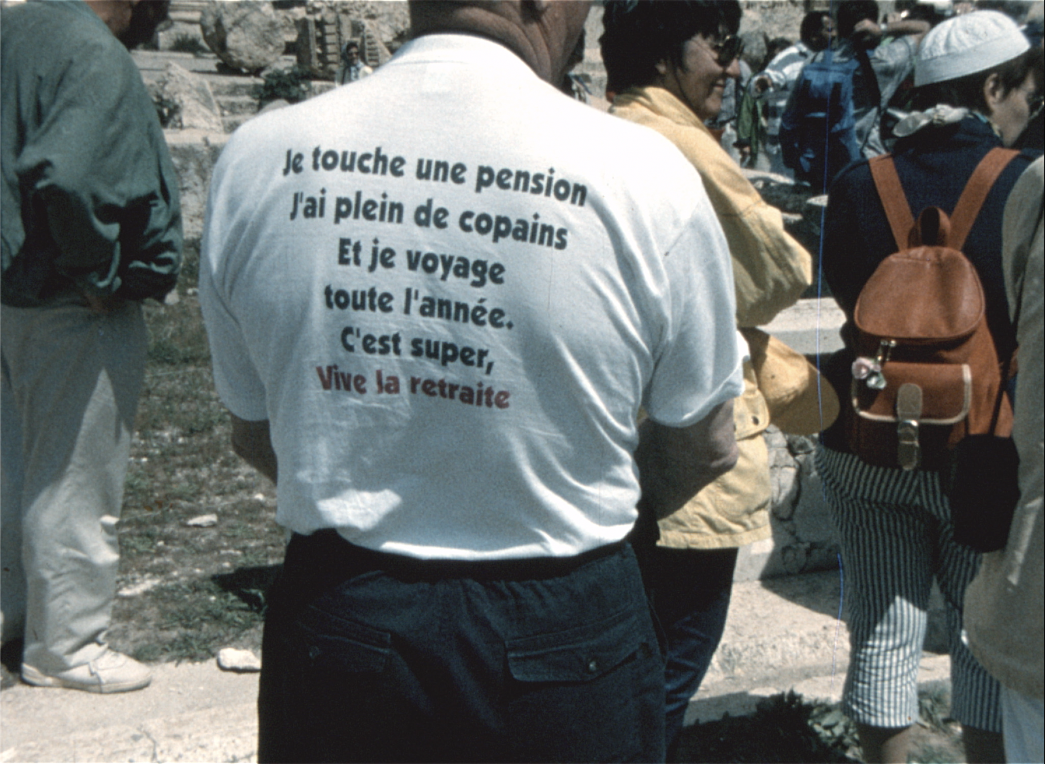 Le film de voyage du cinéaste amateur Gérard Guth, tourné en Syrie à l’aube du second millénaire (1999), est un exemple évident sinon éloquent de la vocation de l’image amateur à un devenir-archive. Il est frappant de constater que la totalité des escales du parcours touristique empruntées par Gérard Guth étaient jusqu’à très récemment inaccessibles. En l’espace de seulement 25 ans, la Syrie a été complètement reconfigurée par la guerre civile (2011-2024). L’un des premiers instants du film plante le décor : un gros plan se fixe sur un portrait gigantesque de Hafez al-Assad, le président de la République arabe syrienne, placardé sur la façade d’un building dans le quartier résidentiel Mazzeh à Damas. Gérard Guth fait suivre ce premier aperçu d’une contre-plongée sur une fresque de propagande honorant le patriarche al-Assad et ses deux fils, l’aîné Bassel, colonel de l’Armée de l’air syrienne et Bachar, son successeur sanguinaire. A posteriori, ce culte de la personnalité du régime baasiste, déjà un mauvais présage en soi, semble annoncer l'imminence des conflits à venir. C’est d’ailleurs dans ce quartier, abritant le palais présidentiel, que les révolutionnaires kurdes mèneront les premières offensives.