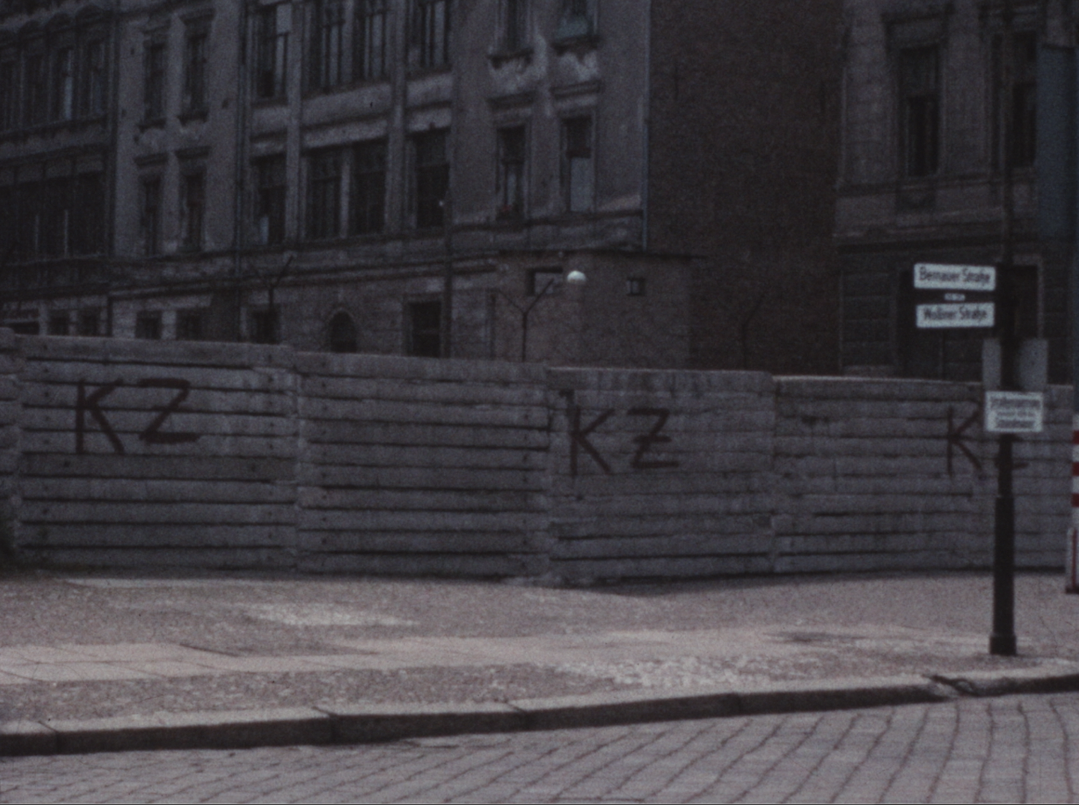 Très près de nous, l’édification du mur de Berlin et ses drames inhérents - la mort de Bernd Lünder, étudiant berlinois abattu par les garde-frontières après avoir tenté de s'évader du secteur Est en franchissant le mur en 1961 - sont frontalement abordés par un cinéaste comme Henri Boltz (fonds Stirn) lors de son séjour à Berlin en 1965. Ses retranscriptions des lettres KZ (Konzentrationslager, camp de concentration) tagués sur le mur en dur et du mémorial de fortune de Bernd Lünder reflètent un état du monde ; celui de l’Allemagne d’après-guerre. Les films se déroulant dans les pays du Bloc de l’Est de jadis (Yougloslavie, Tchécoslovaquie, Bosnie, Hongrie, Bulgarie) prennent également le pouls d’un globe où s’opposent les modèles communistes et capitalistes. Ayant sans doute conscience d’être les témoins d’un monde fracturé, certains réalisateur·rices ont le souci de produire des images des traces et micro-événements qui participent plus largement à graver l’air de leur temps - ici, le contexte de la Guerre froide.