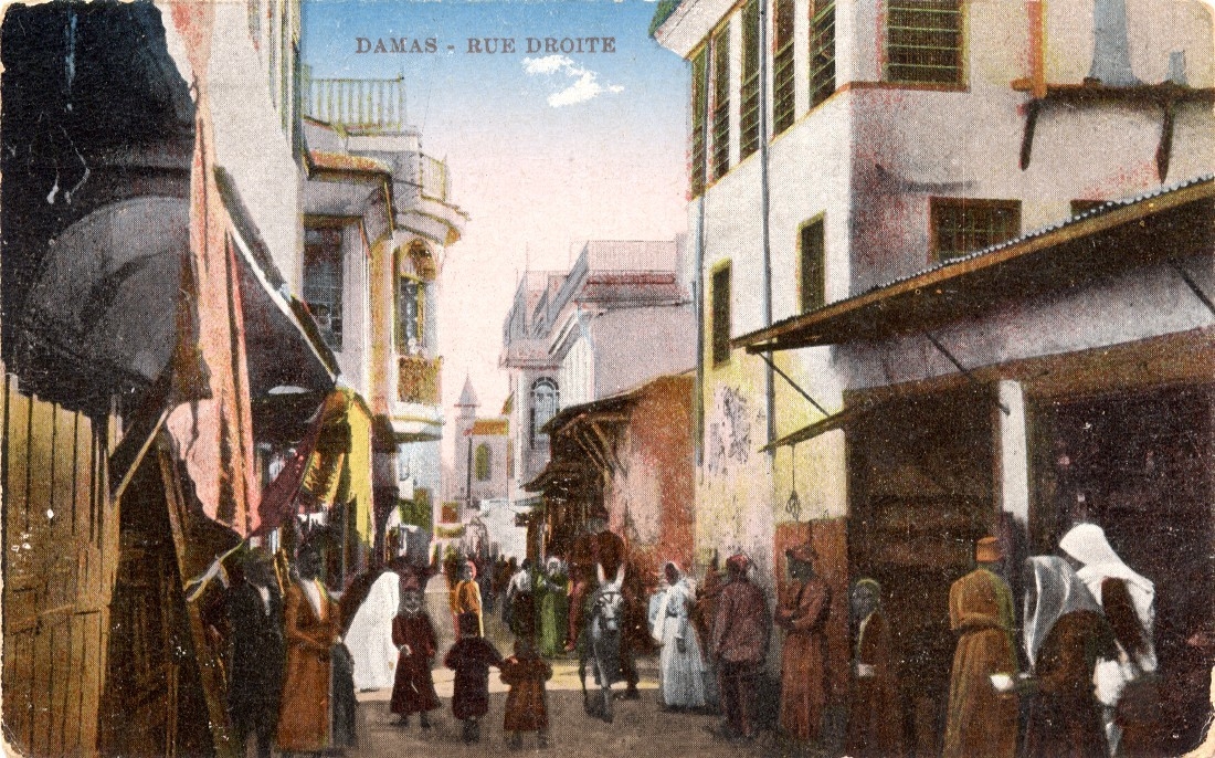 Carte postale - Vieille ville de Damas, rue Droite, 1921 |