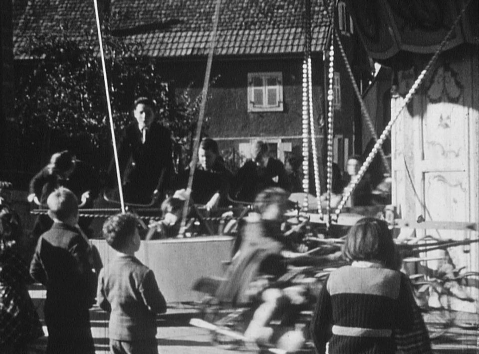 Dans les années 1940, enfants et adultes profitent des joies de la fête foraine.